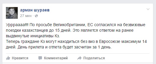 Бывший генеральный директор телеканала КТК Арман Шураев порадовал "новостью" об отмене визового режима с ЕС.