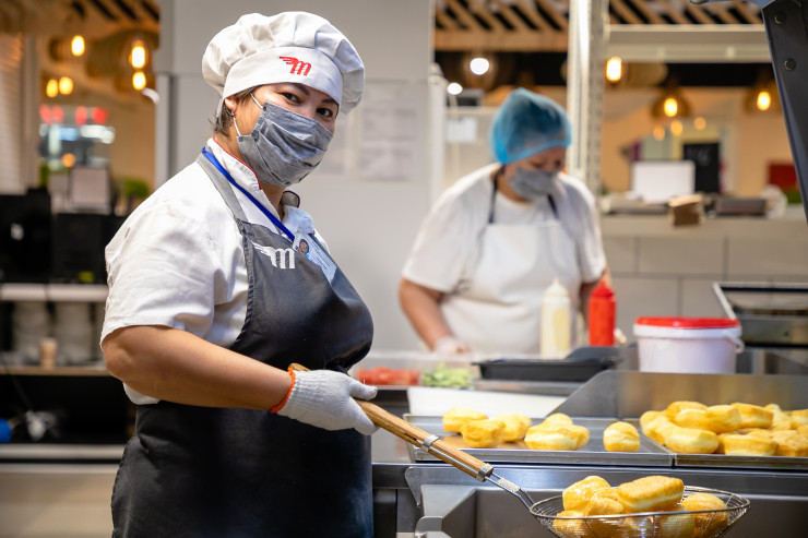 Во-первых, в Magnum все работают в масках и перчатках. Рабочие помещения кварцуют и обрабатывают специальным раствором. Каждый день у сотрудников медосмотр, замер температуры. Кажется, кухня Magnum сейчас одно из самых чистых и безопасных мест.