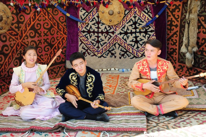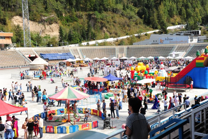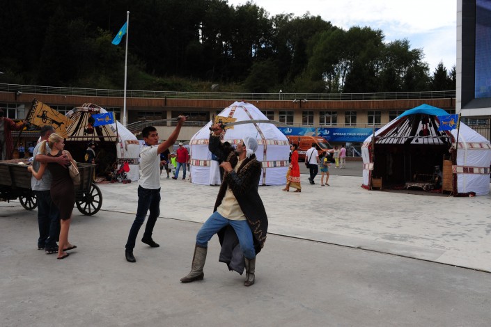 На площадке высокогорного катка "Медеу" при участии Казахского географического общества был воссоздан этноаул, где демонстрировались обряды и обычаи казахского народа.