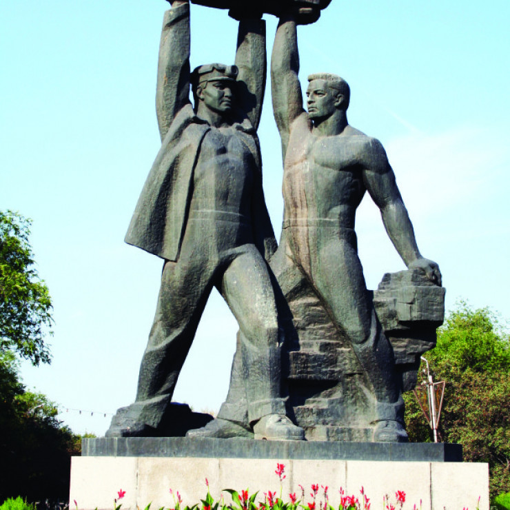На месте Сталина стоит сейчас монумент "Шахтерская слава" - визитная карточка Караганды. Местные жители часто назначают встречи "у памятника" и идут гулять в парк, расположенный прямо за его "спиной". Монумент построили в 1974 году по проекту известного скульптора Анатолия Билыка. Он изобразил двух шахтеров - казаха и русского, которые держат над головой огромный пласт угля.