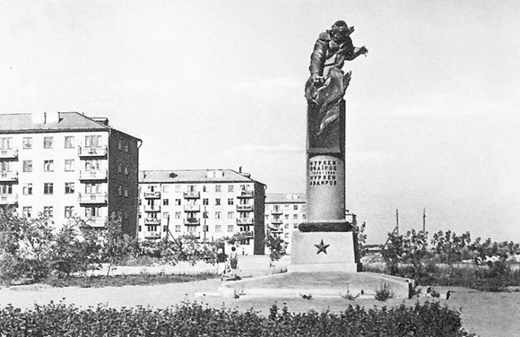 А так в самом начале, в 1958 году, выглядел памятник Герою СССР летчику Нуркену Абдирову.