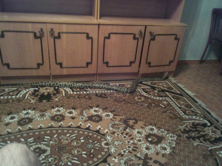 Андрей Селютин, которому 21 год, начал увлекаться редкими питомцами с 2010 года. Сначала парень взял домой аквариум и несколько рыбок, а затем попугая, ежика, хомячков и ящериц. Ну а позже, в прошлом году, он нашел своего любимца, тигрового питона, которого купил за 55 тысяч тенге и привез из Актау.