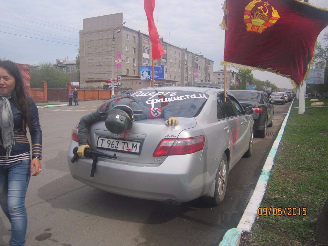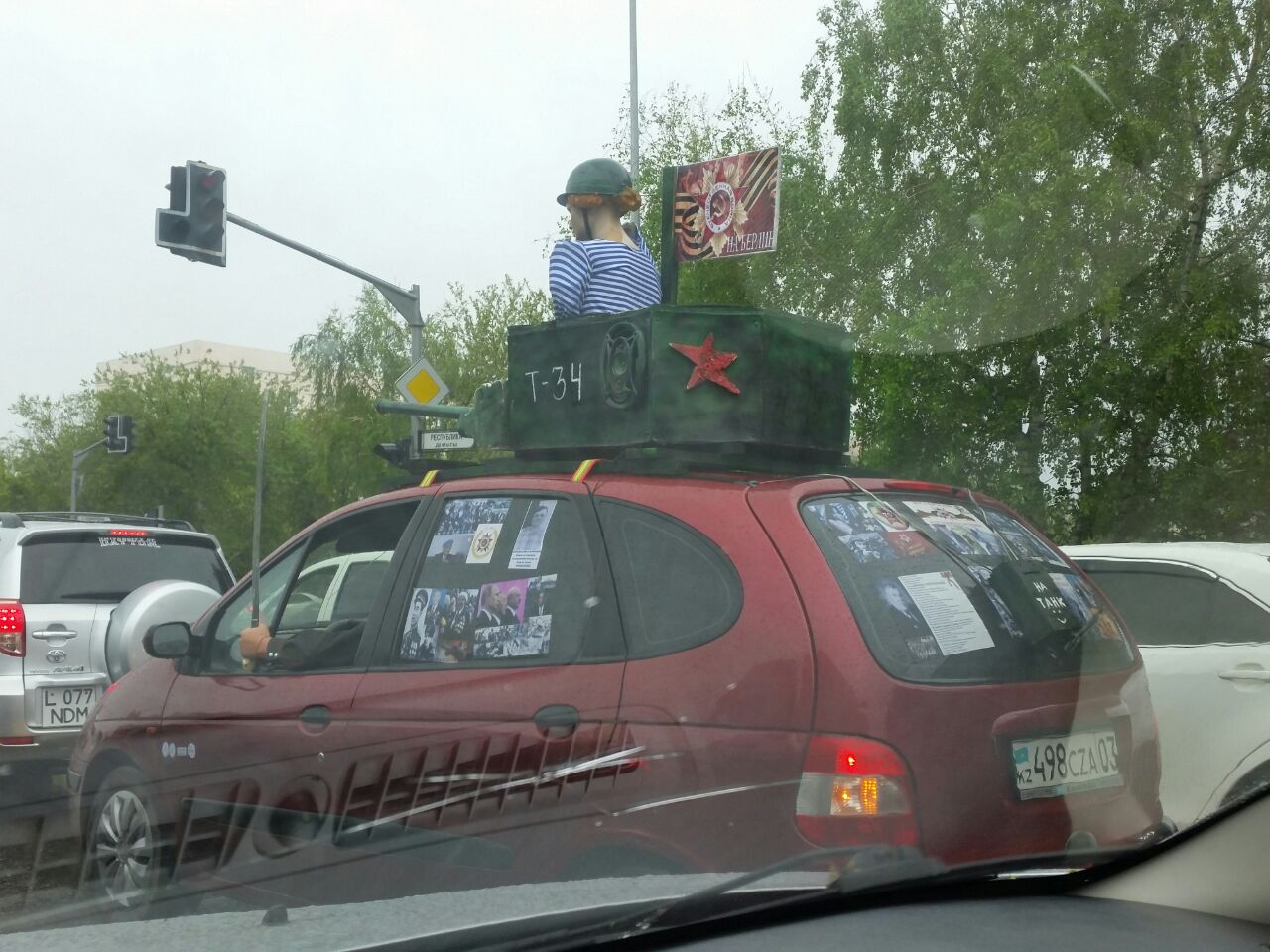 День Победы для многих казахстанцев это не только официальные мероприятия, посещение парадов и маршей или встречи с ветеранами, но и возможность оригинально отметить еще один общий для всех жителей бывшего Советского Союза праздник и проявить свой талант. Жители многих регионов 9 мая не только посещают полевые кухни и поют фронтовые песни, но еще и надевают тематические костюмы и украшают свои автомобили военной атрибутикой. Tengrinews.kz решил собрать наиболее интересные фотографии и видео оригинальных моментов празднования 70-летия Победы. Их главными героями являются не участники официальных шествий, а люди, продемонстрировавшие 9 мая креативное мышление.