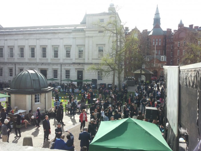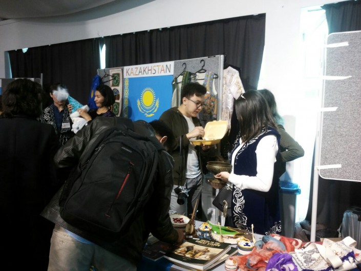 Праздник Наурыз, согласно уже сложившейся традиции, проводился во внутреннем дворе университета UCL, где была установлена сцена для выступлений, столы, где студенты продавали традиционную еду центрально-азиатского региона, а именно: плов, самсу, манты и долму. Местный казахско-кыргызский ресторан Pasha ('Паша') приготовил огромный казан плова, который посетители разобрали очень быстро.