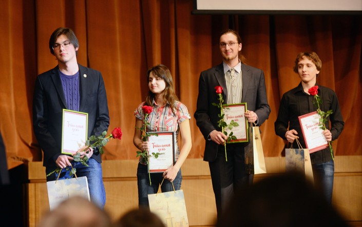 Адиль Кабылда (слева) вместе с другими призерами. Фото с сайта msu.ru