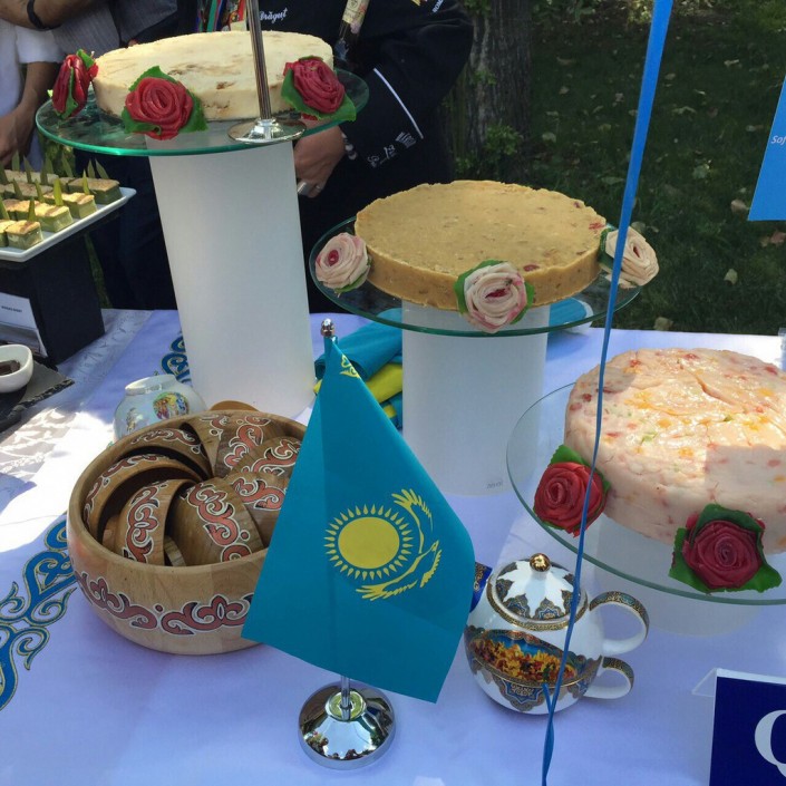 "Фестиваль проходил второй раз, но мы участвовали впервые и сразу заняли первое место. Казахстанский стол был одним из самых оригинальных и красивых. Мы представили коспу, иримшик, джент и самсу, тесто для которой было замешано на шубате. Все это без сахара и жира, только здоровая пища", - рассказала Мащинская.