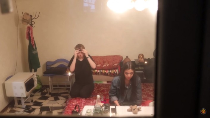 Пранкеры с помощью подруг девушки заманили ее в дом, где якобы принимает гадалка и ясновидящая. Там перед Айжан было устроено целое представление с завязыванием глаз, заговорами и избиением деревянной палкой виртуального врага. В конце колдунья заставила интернет-звезду кричать и довела ее до слез, когда попросила воткнуть иглу в мягкую игрушку.