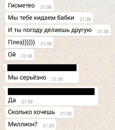 Курьезный случай произошел в работе сервиса Gismeteo.kz, предоставляющего информацию о погоде по Казахстану и миру. Школьники из Петропавловска предложили руководителю казахстанского офиса сайта миллион тенге за то, чтобы изменить данные о погоде в их городе. Информацию об этом корреспонденту Tengrinews.kz подтвердил представитель сервиса.