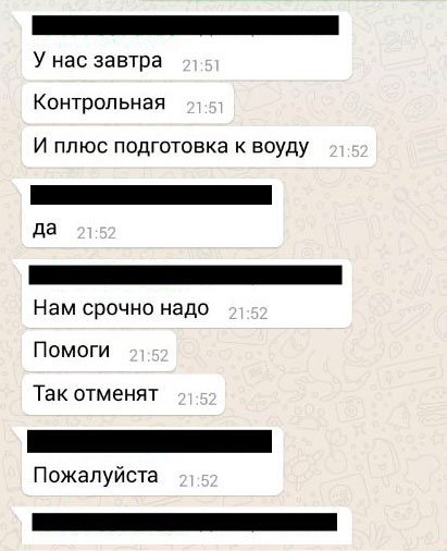 Сообщения учеников, присланные на WhatsApp, опубликовал портал Stan.kz. Школьники признались, что учатся в лицее и завтра им предстоит сложная контрольная работа. Они попросили, чтобы в прогнозе на среду, 20 января, температура воздуха "упала" до минус 30 градусов. И даже заявили, что готовы заплатить за это миллион.