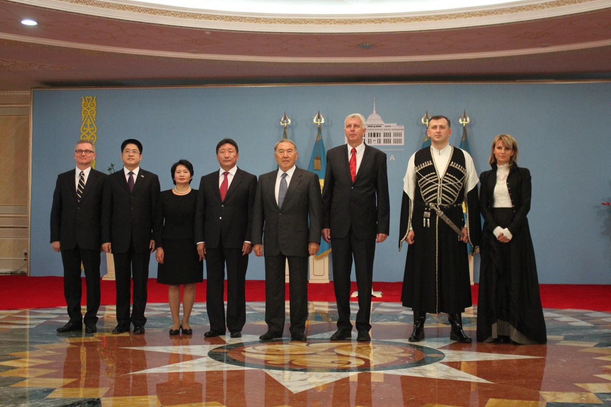 Как известно, главы иностранных дипмиссий на встречу в Акорду часто надевают свою национальную одежду. На этом фото отличился посол Грузии (справа).