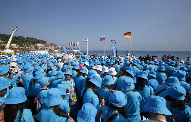 Миллиардер заказал 147 автобусов, чтобы привезти китайских туристов в Ниццу, где они на знаменитой набережной Променад Англез установили рекорд Гиннесса, выстроившись в самую длинную фразу.