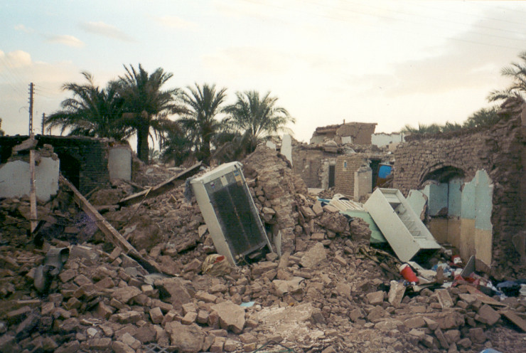 Это случилось ранним пятничным утром, когда горожане еще спали. Эпицентр землетрясения находился всего в нескольких километрах от Бама, и его жители ощутили всю силу разрушительной стихии. Большинство домов здесь были построены из некрепкого сырцового кирпича и обрушились от первых же толчков. В результате заживо погребенными оказались почти 30 тысяч человек, которые даже не успели встать со своих кроватей. Разрушенный Бам. Фото ©Григорий Беденко