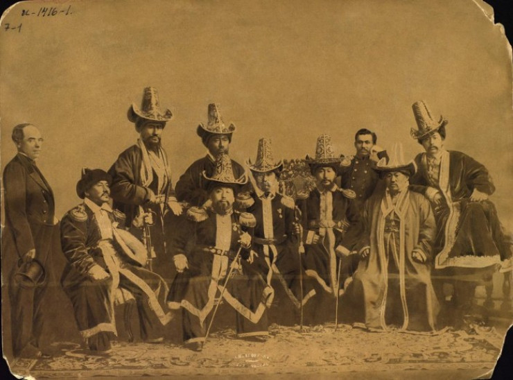 Қазақ сұлтандары орыс шенеуніктерінің өкілдерімен. Санкт-Петербург, XIX ғасырдың екінші жартысы. Б. Л. Модзалевский жинағынан
