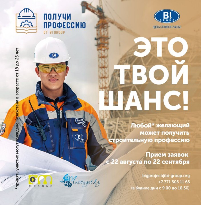 Строительная компания BI Group совместно с радиостанцией "Жулдыз ФМ" и порталом Massaget.kz запустили социальный проект "Получи профессию с BI Group".