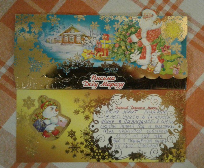 Дедушке Морозу написали дети, болеющие муковисцидозом. Первоклассник Коля любит собирать конструктор "Лего", поэтому в подарок он попросил для себя именно его.