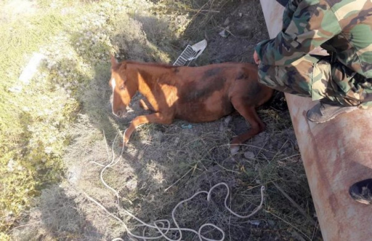 Лошадь застряла между трубами в пригороде Актау