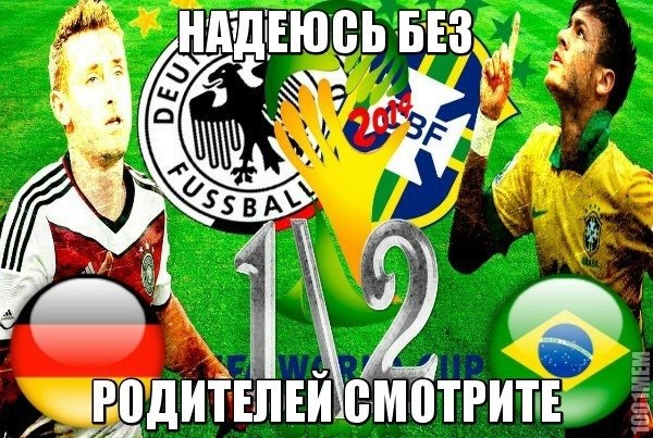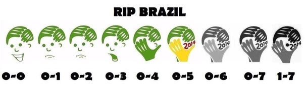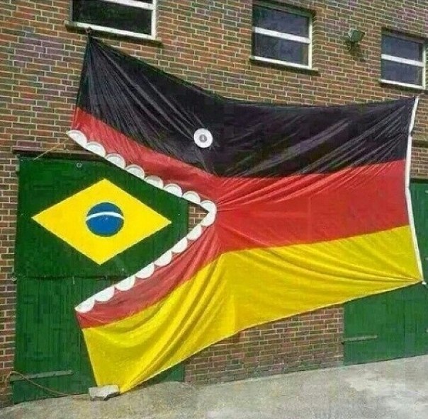 Встреча первых полуфиналистов завершилась со счетом 7:1, что и вызвало негодование фанатов Бразилии и неимоверную радость немецких болельщиков. Юмор, выраженный во фразах и картинках, касался и определенных бразильских игроков, и самого факта крупного поражения сборной. К примеру, фанаты пожалели экс-звезд команды - Рональдо, Кака и Рональдиньо, отметив, что при них такой ситуации не было.