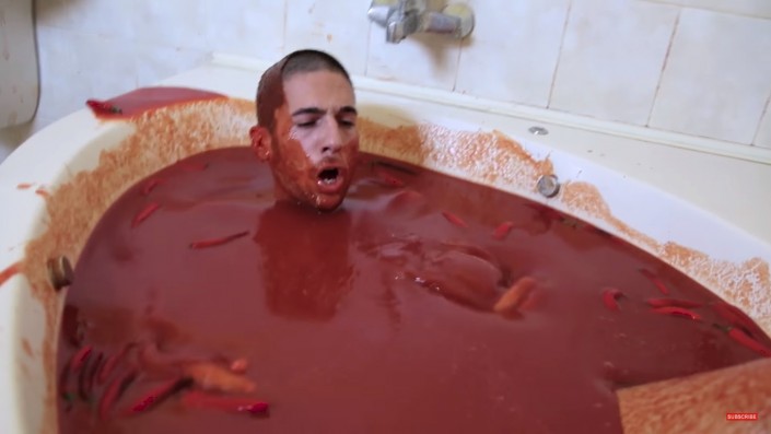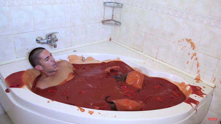 Британский видеоблогер Cemre Candar ради славы и популярности решился на отчаянный эксперимент. На своем канале в YouTube молодой человек выложил видео, на котором он купается в остром соусе перца чили.