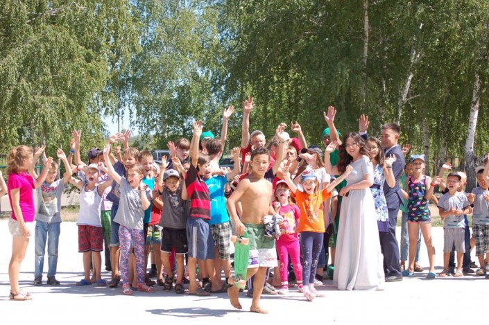 После официальной регистрации брака пара отправилась в один из летних загородных лагерей, где отдыхали воспитанники двух детских домов. Здесь они накрыли для детей праздничный стол, а команда профессиональных аниматоров по их заказу организовала для ребятни развлекательную программу на несколько часов.
