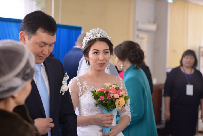 Молодожены в Астане пошли на выборы в день свадьбы, передает корреспондент Tengrinews.kz. На голосование в школу-гимназию №3 на 106 участок они пришли в свадебных нарядах.