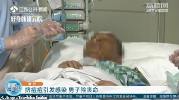 Мужчина выдавил прыщ на лице и оказался в реанимации Кадр из видео: JSTV