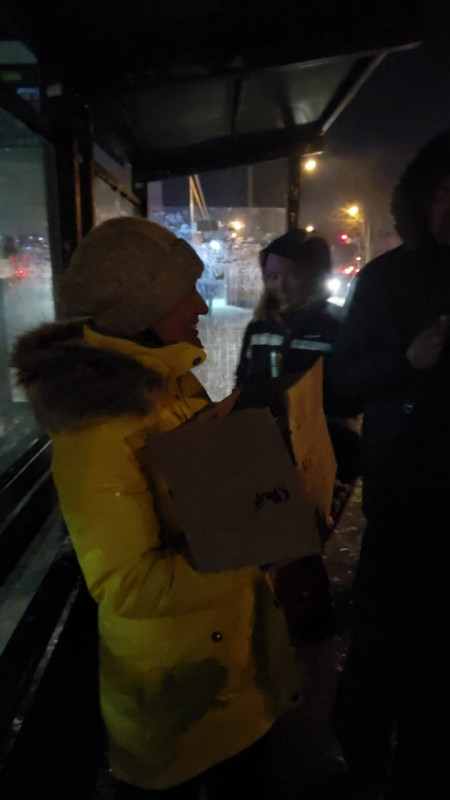 Поздним вечером волонтеры обходили остановки. Встречая там людей, предлагали им горячий чай и выпечку. Они заходили даже в салоны автобусов, чтобы угостить кондукторов, водителей и пассажиров. Свою акцию волонтеры назвали "Горячий чай".