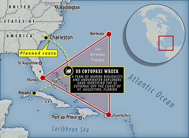 И вот только сейчас многолетняя тайна оказалась раскрыта. Обломки SS Cotopaxi найдены на дне примерно в 35 морских милях (около 65 километров) от побережья Сент-Огастина, штат Флорида (США).