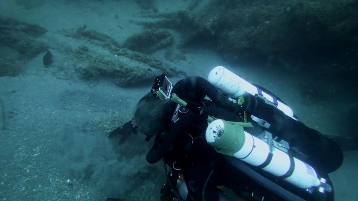 Подводные исследователи осматривают останки пропавшего судна. © Science Channel