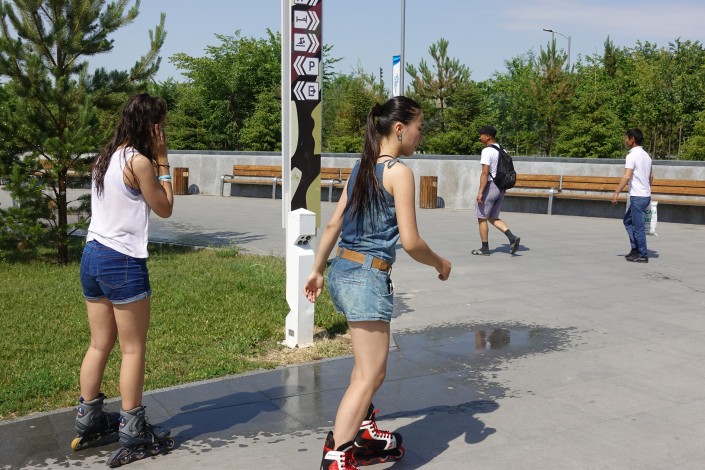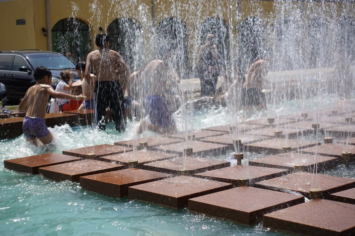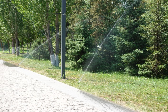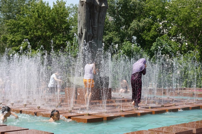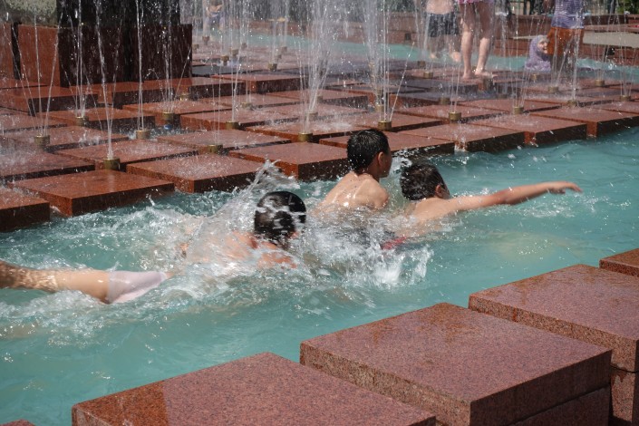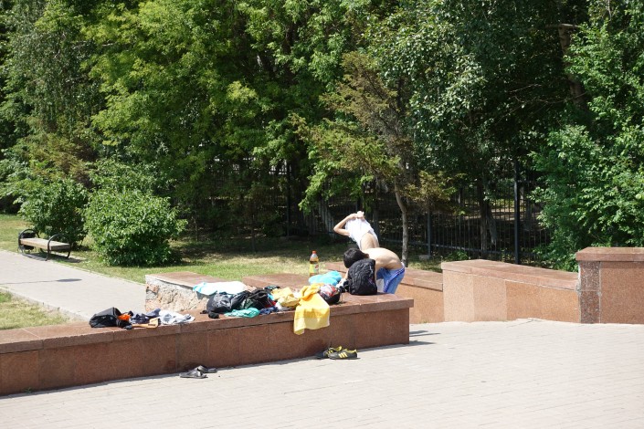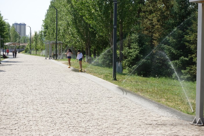 Так спасаются от жары в городском парке.