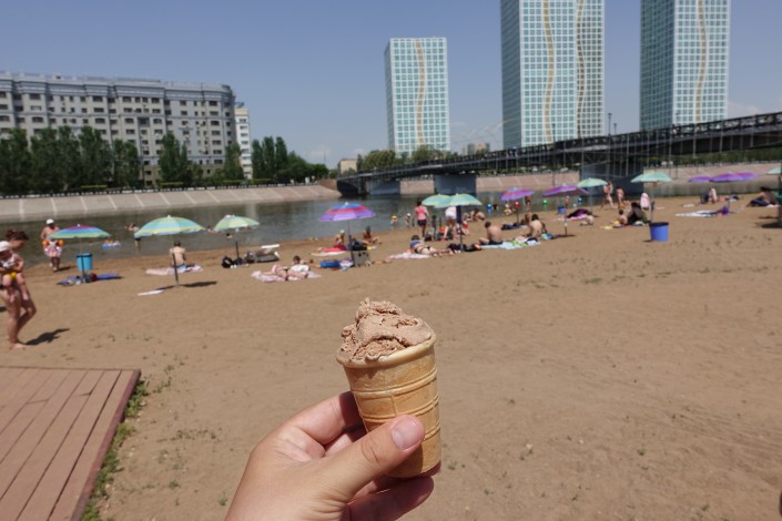 Чтобы еще лучше охладиться, здесь продают мороженое и напитки. Например, этот стаканчик стоит 200 тенге.