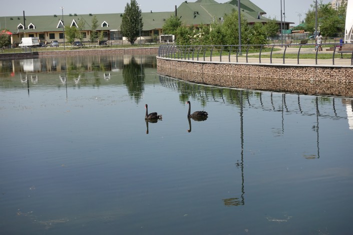 Еще один водоем поблизости, который тоже, по всей видимости, не предназначен для купания - пруд с лебедями.