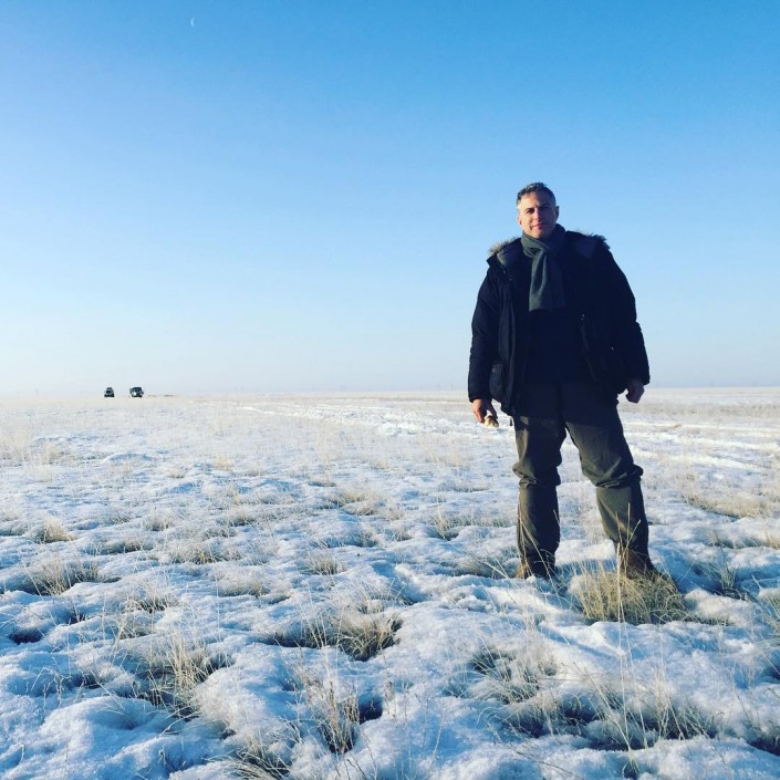 Фотокорреспондент рассказал, что его путешествие началось в Москве, где его ожидал рейс в Караганду. Потом уже 500 километров они проехали по голой степи на машинах, а затем еще 80 километров - на снегоходах.