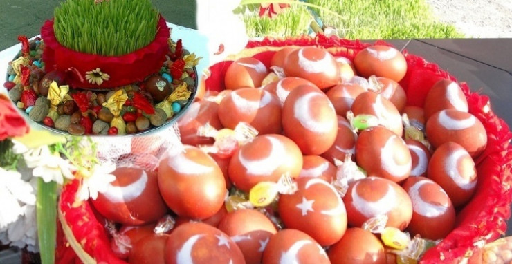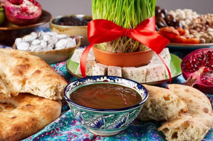 Дәл осы тағам Әзербайжандағы Новруз Байрамында да дайындалады. Бірақ сәл өзгеше сэмени (бидай өсікін) деп аталады. Екі апта бұрын бидай егіп, оны баптап өсіреді. Наурызда сэмениді қызыл жіппен байлап дастарханға қояды. Оны базардан сатып алуға немесе сұрап алуға болмайды. Әр отбасы арнайы өсіруі қажет. Оған қоса дастарханға "с" әрпінен басталатын жеті тағам қойылады. Олардың ішінде маңыздысы скэд (сүт), сирке (сірке суы) және сэмени. Мейрамның негізгі тағамы - күріш. Ол ет, тауық, балықпен дайындалады. Үстел үстіне боялған жұмыртқа, айна, майшамдар қойылады. Көшелерден түйелер керуені өтеді. Бұл қариядан балаға дейін асыға күтетін ерекше шара.