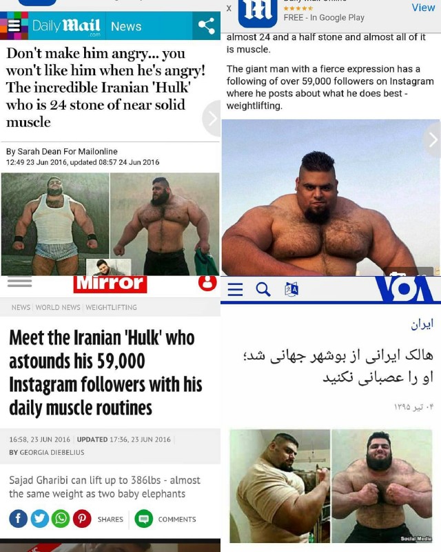 Тяжелоатлет из Ирана Саяд Гариби стал звездой Instagram благодаря незаурядным физическим данным. На страницу 24-летнего мужчины, которого пользователи и СМИ прозвали "иранским Халком" или "персидским Геркулесом", уже подписались более 100 тысяч человек.