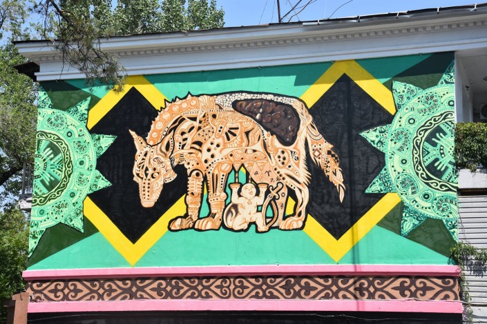 Новый мурал появился на фасаде дома по проспекту Назарбаева, 118 (пересечение с улицей Богенбай батыра, 128). В центре изображения большая волчица. Она заботится о человеческом ребенке, который одновременно является ее детенышем. Автором произведения искусства стал казахстанский художник Мухит Аканаев, а реализовать идею ему помогли студенты Казахской национальной академии искусств имени Жургенова Аманкул Нурболат и Кенес Бекболат.