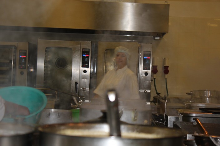 Находиться на кухне и в других помещениях посторонним можно только в специальной одежде. На первый взгляд может показаться, что ты находишься в больнице.