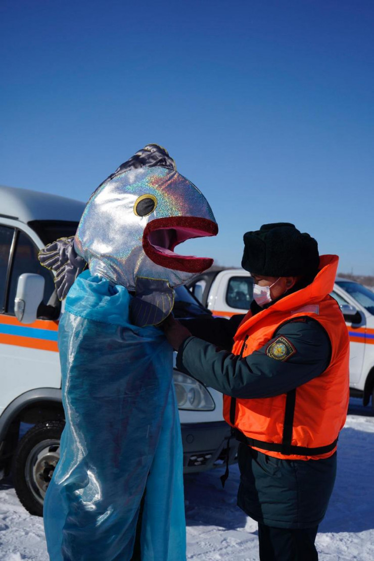 Как отметили в пресс-службе ДЧС ВКО, "рыба" символизировала улов, который не стоит того, чтобы рисковать и выходить на тонкий лед.