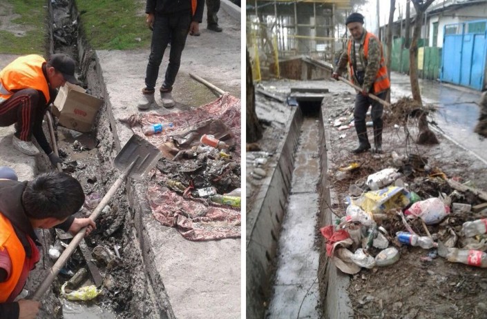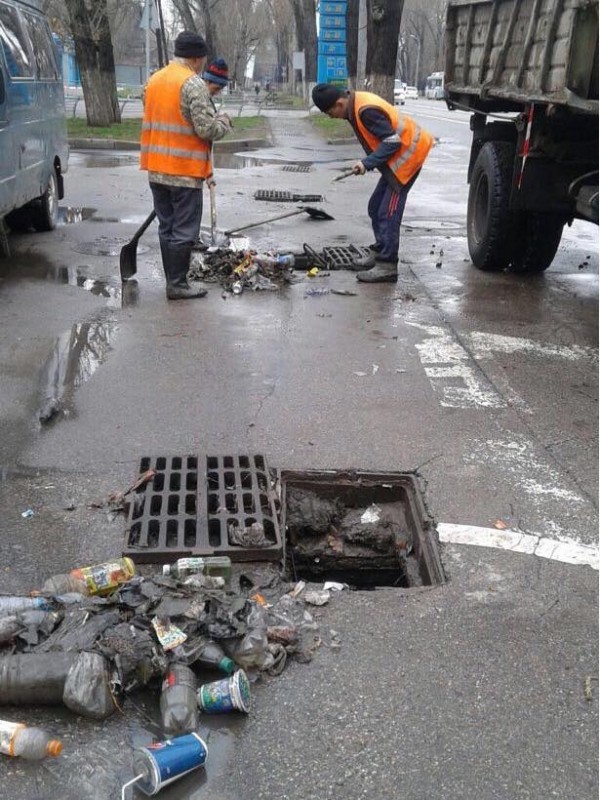 Пока горожане фиксируют на видео, как им приходится промачивать ноги, чтобы идти по тротуарам, и как в лужах утопают колеса машин, коммунальные службы показывают, что можно найти в арыках, по которым должна уходить дождевая вода.