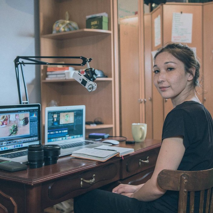 По ее словам, за один раз она снимает процесс приготовления сразу двух-трех блюд, причем на один рецепт в среднем уходит два-три часа. Типичный процесс производства ролика выглядит так: подготовка ингредиентов - монтаж - озвучка и подбор музыки - запись текста для поста и публикация в Instagram и YouTube.