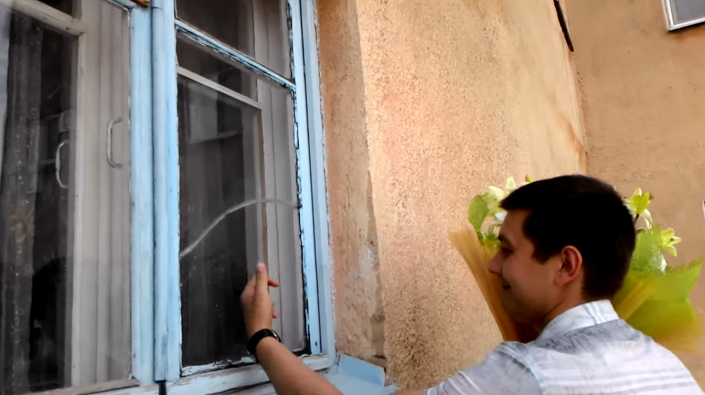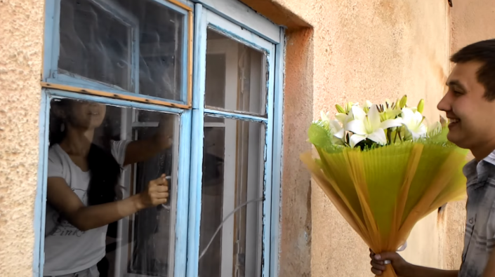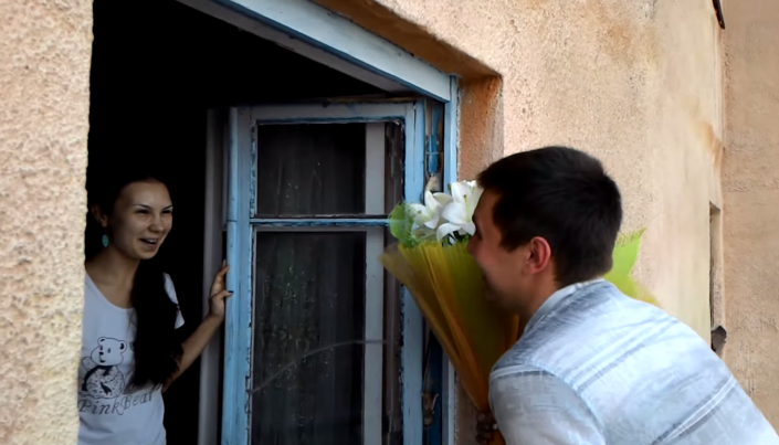Оригинальное предложение руки и сердца сделал парень по имени Стас своей возлюбленной Алине в городе Сатпаев (Карагандинская область). Молодой человек с помощью строительного подъемника поднялся с букетом на четвертый этаж. Там он вручил девушке цветы и предложил выйти за него замуж. Радостная и немало удивленная невеста ответила согласием.