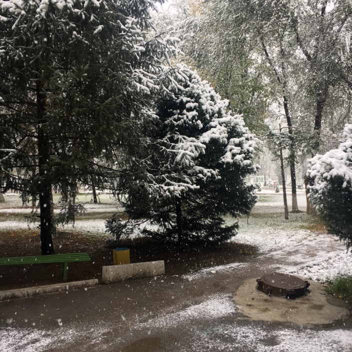 Снег пошел еще накануне ночью. Практически сразу он растаял. Осадки продолжились сегодня в первой половине дня.