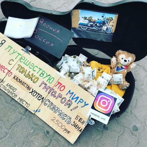 Накаджима Джунджи выехал из Токио в середине мая. Проехал Южную Корею, Монголию, Россию и сейчас находится в Казахстане.