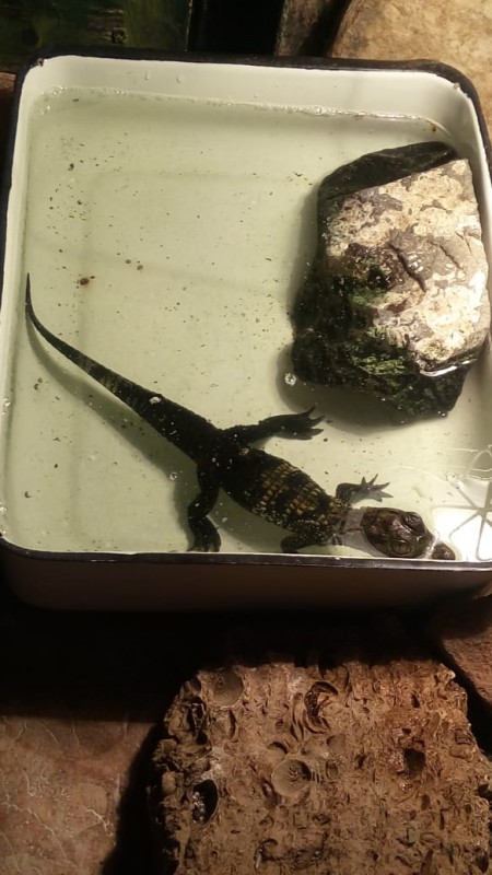 Сотрудники зоопарка говорят, что кайман, когда его нашли, был длиной всего 20-25 сантиметров. В природе взрослые особи этого вида вырастают до двух метров и могут весить до сорока килограммов.