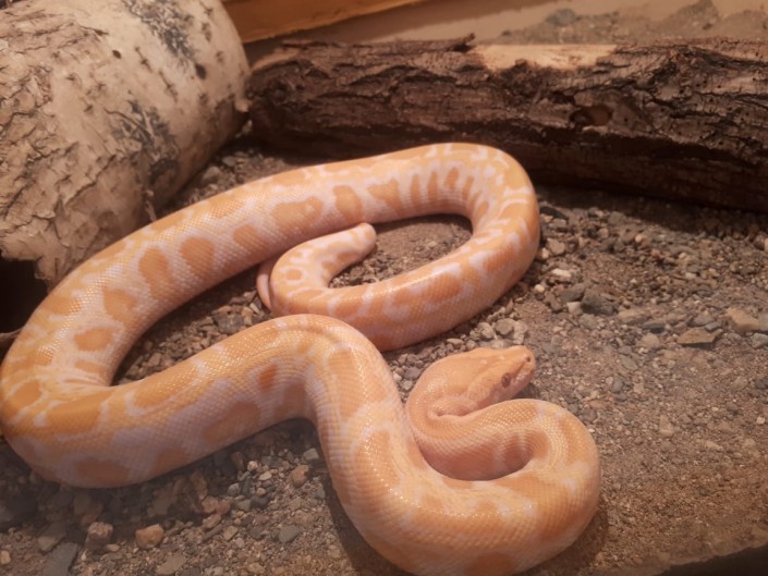 "Кайман у нас первый, больше таких нет в зоопарке. А вот питон был и раньше, но уникальность подкидыша в его окраске - он альбинос, - продолжает Ербол Байжанов. - Он у нас очень красивый, желто-оранжевый".