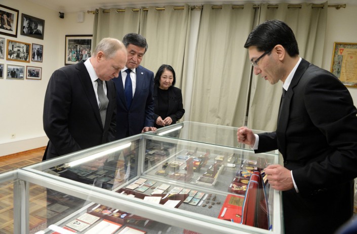 28 марта президент России Владимир Путин совершил визит в Кыргызстан, в рамках которого вместе со своим кыргызским коллегой Сооронбаем Жээнбековым посетил дом-музей писателя Чингиза Айтматова в Бишкеке, пишет АКИpress.