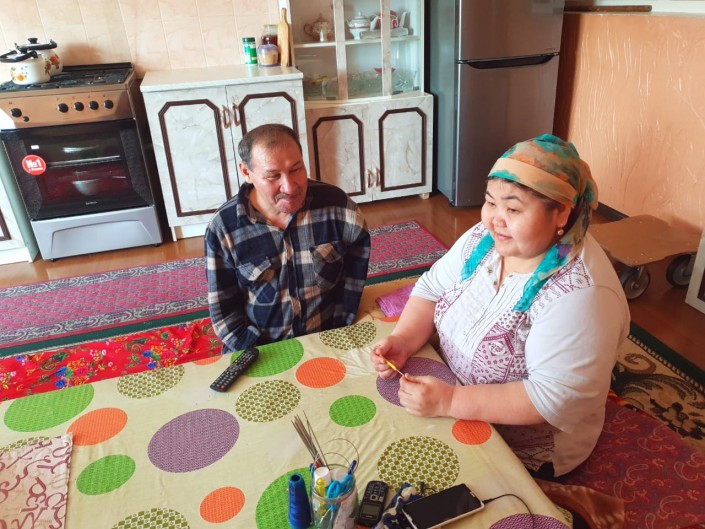 Несмотря на состояние здоровья, Сеитбаевы привыкли зарабатывать на жизнь сами. Сейчас Бакытжан таксует, а Куляш занимается рукоделием. Женщина шьет приданое для невест. Ее изделия восхищают своей красотой. Также она занимается плетением разных вещей.