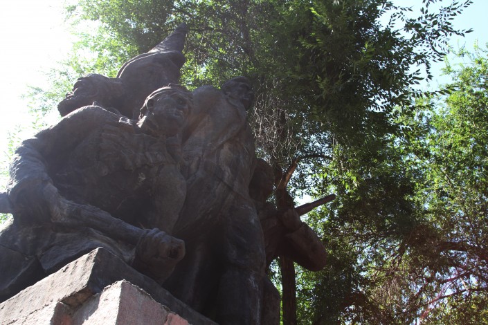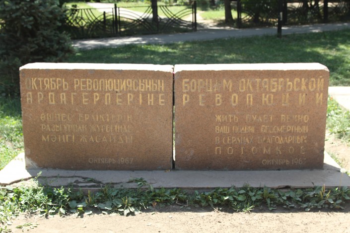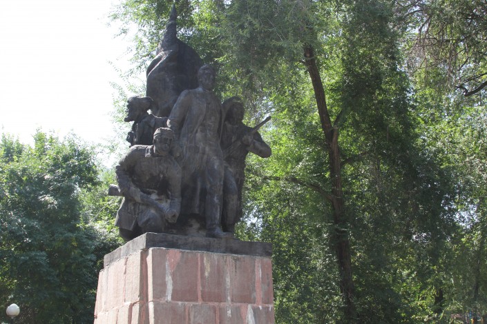 Памятник борцам за установление Советской власти в Семиречье был установлен в 1967 году на пересечении проспекта Райымбек батыра и улицы Пушкина. За кинотеатр "Сары-Aрка" постамент был перенесен в 2012 году.