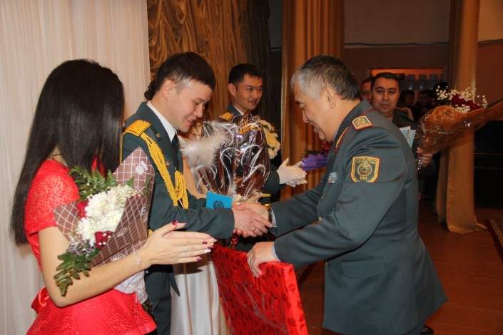 Помимо друзей и родственников, в зале присутствовал весь личный состав части. Заместитель командующего по воспитательной работе Ниязтай Алкешев вспоминает, что раньше регистрации в воинской части были традиционными, но за последние десять лет Нурсултан первый, кто отважился сменить дворец бракосочетаний на армейский актовый зал.