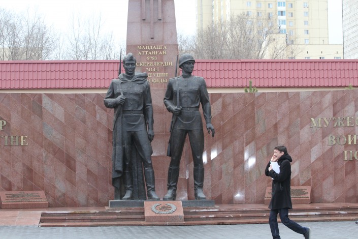 В редакцию Tengrinews.kz обратился читатель, который обратил внимание на памятник двум солдатам, стоящий по проспекту Победы. Как выяснилось, на табличках, которые являются частью монумента, не хватает некоторых букв и цифр, в том числе не читаются даты 1941-1945.