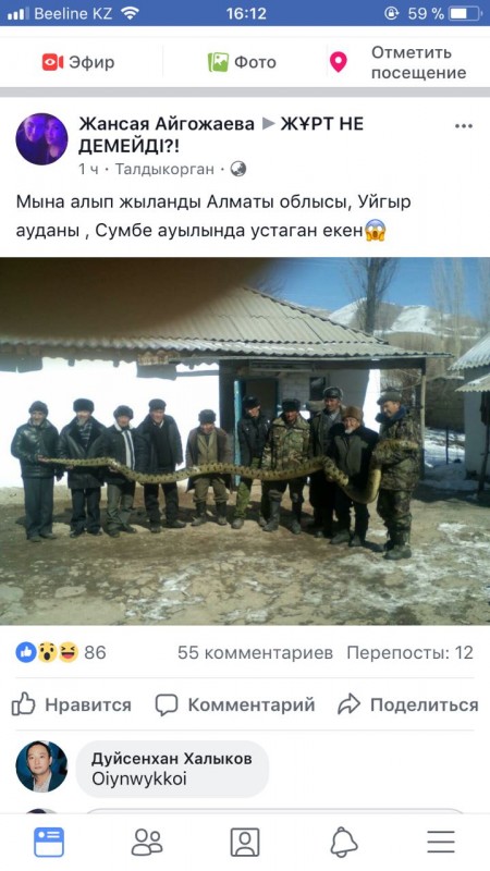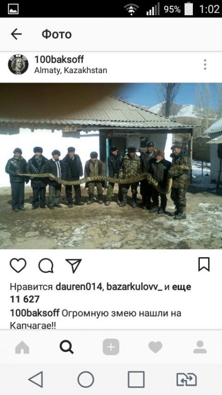 Он шақты адам көтеріп тұрған алып жыланның суреті бірнеше күннен бері әлеуметтік желіні дүрліктіріп жатыр, - деп хабарлайды Тengrinews.kz тілшісі.